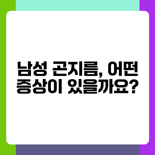 곤지름, 혹시 알고 계신가요? 남성에게도 발생하는 성병 중 하나인 곤지름은 생각보다 흔하지만, 정확한 정보가 부족해 걱정이 앞서는 질환이라고 합니다. 이 글에서는 곤지름의 증상부터 원인, 치료 방법, 전염 경로 그리고 예방을 위한 주의사항까지, 남성분들이 궁금해하실 만한 모든 것을 자세하게 알려드리려고 합니다. 함께 알아보고 불안감을 해소해 보도록 해요.