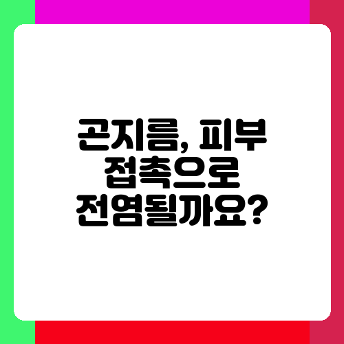 네, 곤지름은 피부 접촉을 통해 전염될 수 있습니다. 특히 성 접촉을 통한 전염이 가장 흔하지만, 간접적인 접촉을 통해서도 전염될 가능성이 있습니다. 감염된 사람의 피부나 점막과 직접 접촉하거나, 감염된 사람이 사용했던 수건이나 속옷 등을 통해서도 전염될 수 있다고 합니다. 따라서 개인 위생에 신경 쓰는 것이 중요하며, 다른 사람과의 공용 수건이나 속옷 사용을 피하는 것이 좋습니다. 공용으로 사용하는 샤워실이나 탈의실에서도 주의를 기울여야 합니다. 다른 사람과의 신체 접촉을 최소화하고, 개인 위생 용품을 사용하는 것이 전염을 예방하는 가장 효과적인 방법입니다. 특히 성관계 시에는 콘돔 사용을 생활화하는 것이 좋습니다.