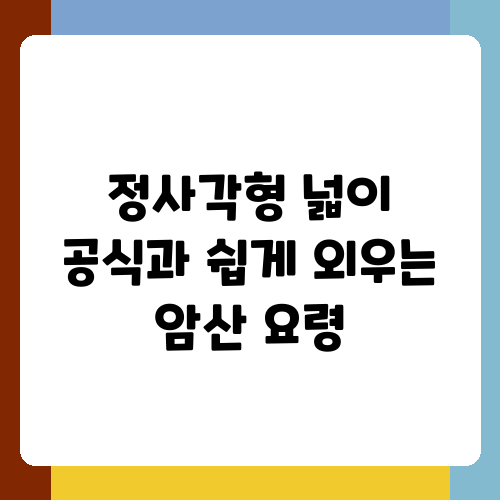 정사각형의 넓이를 구하는 공식은 정말 간단하죠. 하지만 막상 계산하려니 복잡하게 느껴지거나, 암산으로 빠르게 계산하는 방법을 몰라 어려움을 겪는 분들도 있을 거예요. 오늘은 정사각형 넓이 공식을 확실하게 이해하고, 누구나 쉽게 암산으로 계산할 수 있는 요령을 알려드릴게요. 함께 재밌게 정사각형의 세계를 탐험해 봐요!