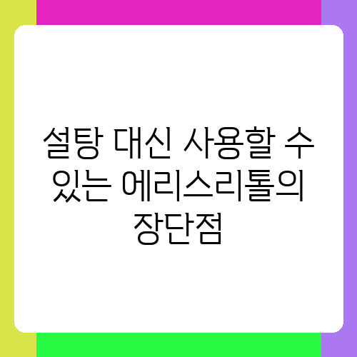 결론적으로, 에리스리톨은 설탕을 대체할 수 있는 좋은 선택지 중 하나이지만, 과다 섭취 시 부작용이 발생할 수 있으므로 주의가 필요합니다. 자신의 몸 상태와 섭취량을 고려하여 신중하게 사용하시길 바랍니다. 여러분의 건강한 선택을 응원합니다!
