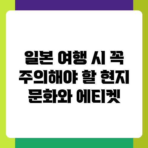 일본 여행을 계획 중이시라면, 흥미진진한 관광과 맛있는 음식 외에도 꼭 알아두어야 할 중요한 부분이 있습니다. 바로 일본의 독특한 문화와 에티켓입니다. 사소한 실수 하나가 오해를 불러일으킬 수도 있고, 여행의 즐거움을 반감시킬 수도 있기 때문에, 미리 알아두고 예의를 갖추는 것이 중요합니다. 이 글에서는 일본 여행 중 꼭 주의해야 할 현지 문화와 에티켓을 자세히 알려드리겠습니다. 즐거운 일본 여행을 위해, 함께 알아볼까요?
